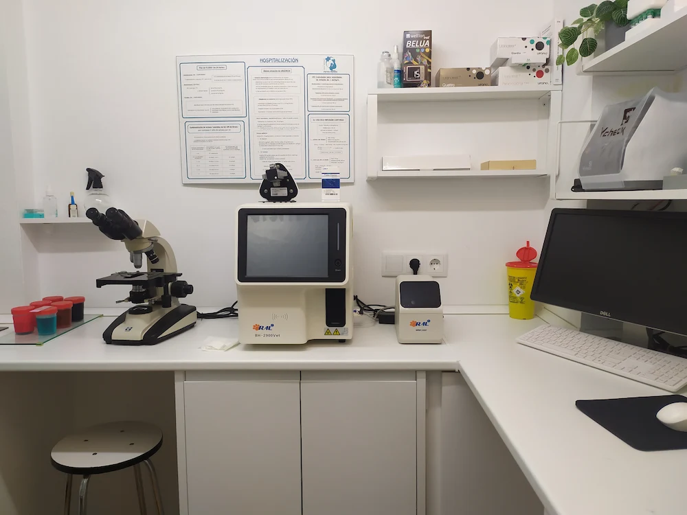 En la clínica veterinaria Parque Morales contamos con un laboratorio dotado de microscopio y tinciones, equipo de hematología y bioquímica, así como distintos test de diagnóstico para enfermedades infecciosas.